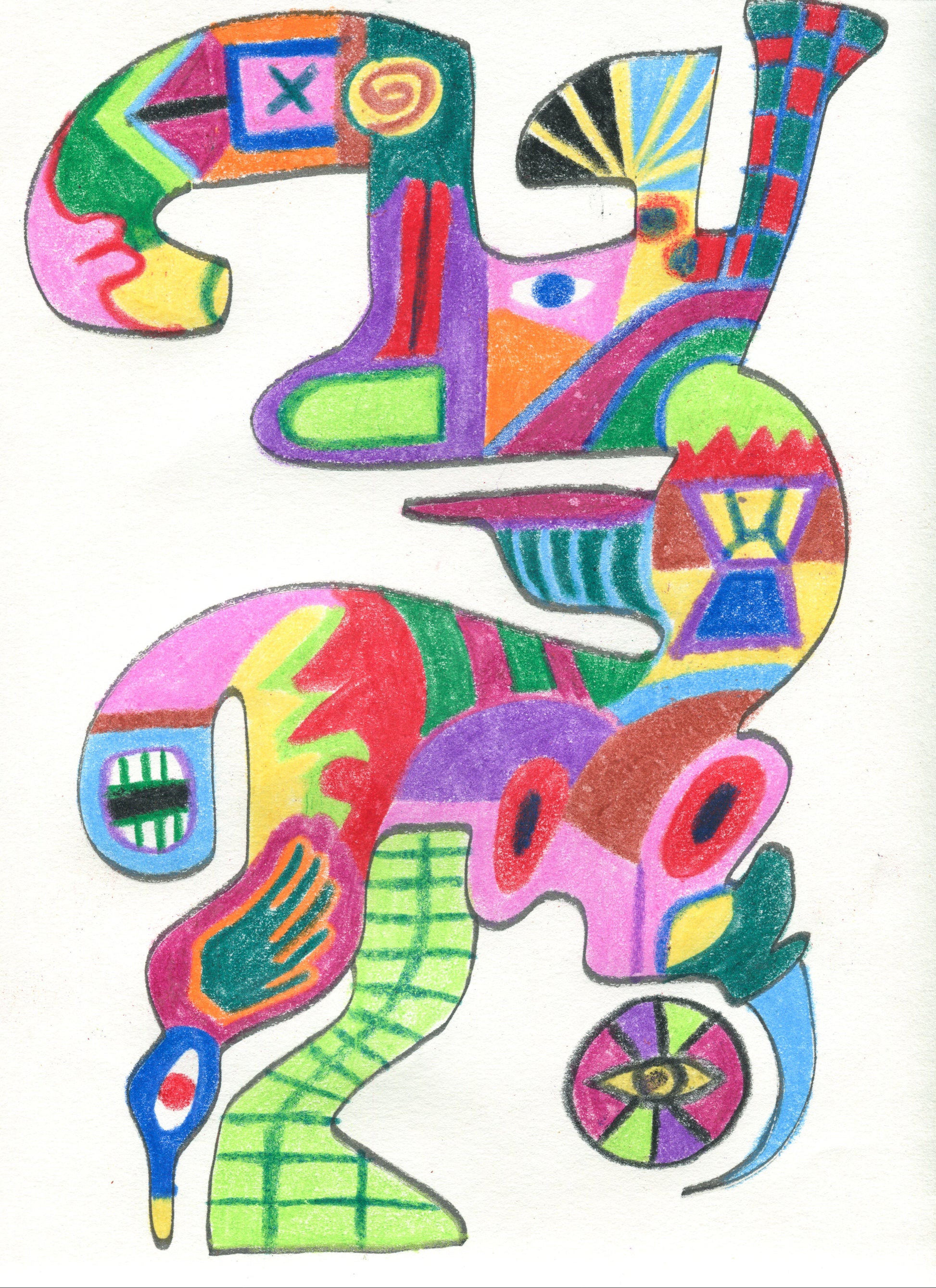 Wax crayons, paper